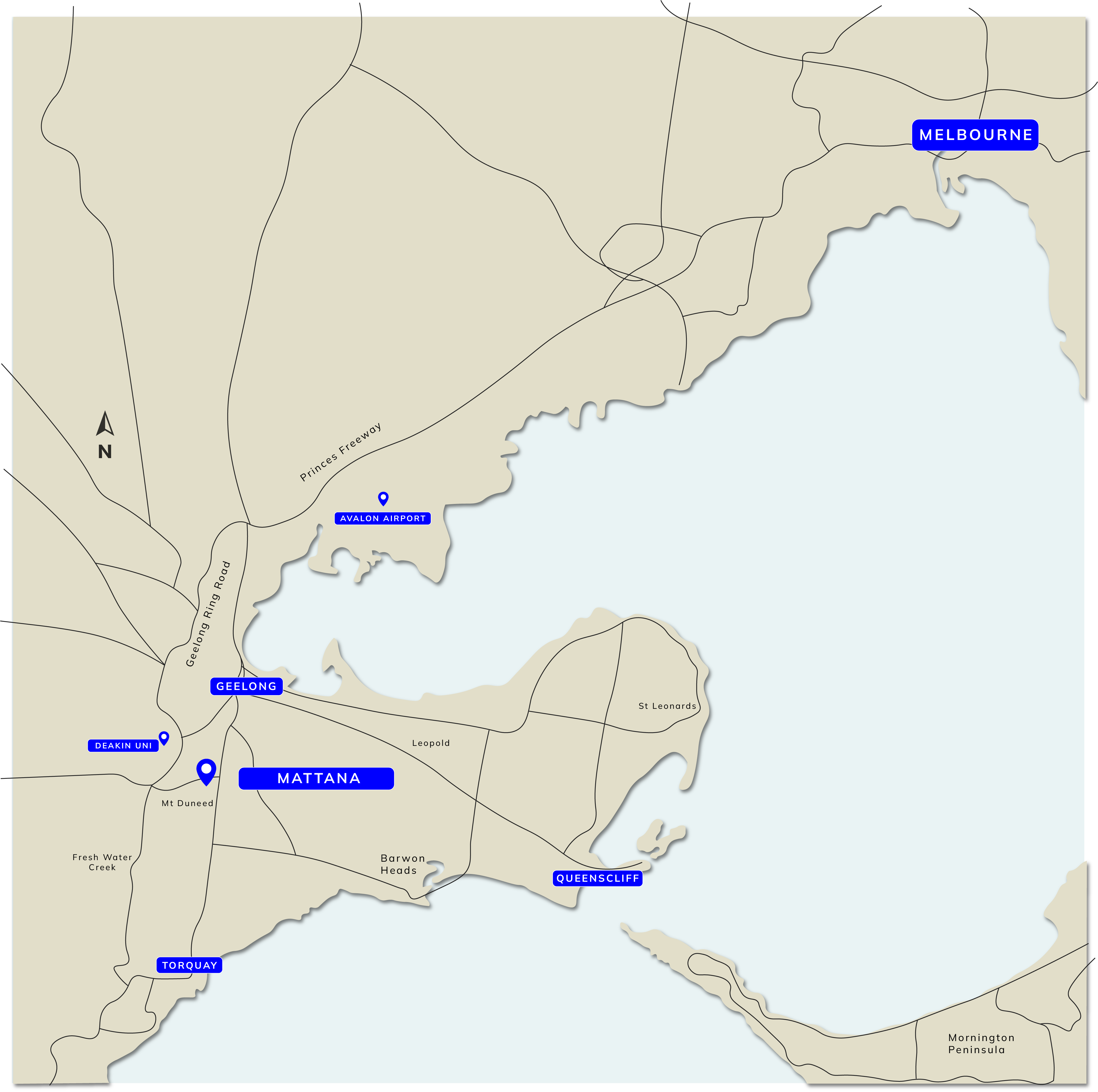 With only a short drive to the Ring road, commuting is a breeze to Melbourne, the Surfcoast, world class beaches and the Great Ocean Road. Mattana is in close proximity to everything Geelong and the Surf Coast has to offer. Just a kilometer down the road, Armstrong Creek Town Centre is another flourishing precinct with a huge range of local retail and convenience stores. Mattana is not far from many sporting clubs, recreational facilities, including Armstrong Creek Cricket and Sporting Club, Armstrong Creek Sharks Football Netball Club and Hoop City. With a wonderful array of school and education choices nearby, Mattana has everything you need.