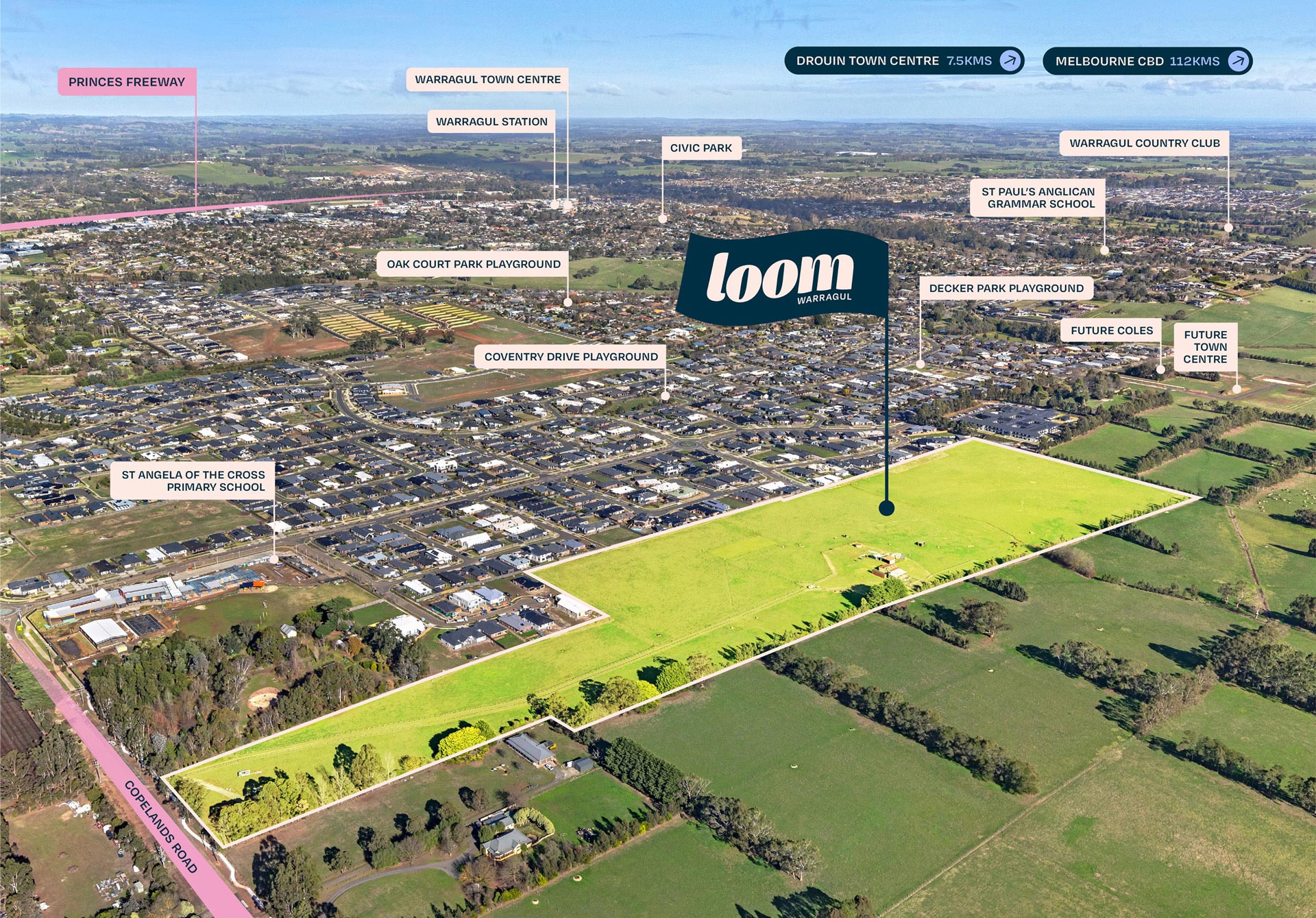 Loom, a new community offering 200 distinct lots, is woven into the heart of Warragul. With each house and land package intended to shape a life less ordinary, Loom stands apart for its welcoming community feel and connection to its relaxed country lifestyle. With the Warragul town centre less than 10 minutes away, as well as local parks, primary schools, and future supermarket just minutes away from the estate, Loom offers something for every kind of family and lifestyle.