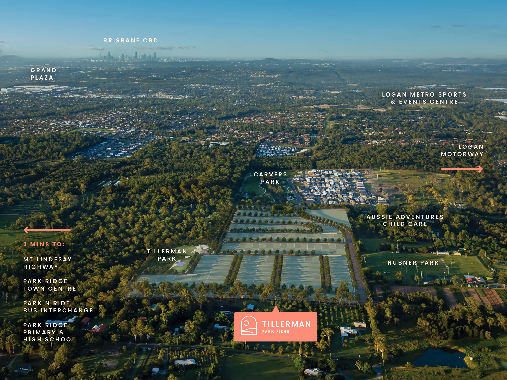 Tillerman is a 290 lot sub-division located in Park Ridge within the Logan LGA, one of the fastest growing areas in South East Queensland. Presented as a collection of well-considered land parcels surrounded by serene bushland, this boutique community will be released over eight stages with blocks ranging in size from 319sqm up to 713sqm. Brought to you by community developer HB Land, the project will include a 1ha community park while being located next to Hubner District sports grounds and within 5km of schools, childcare and shops.